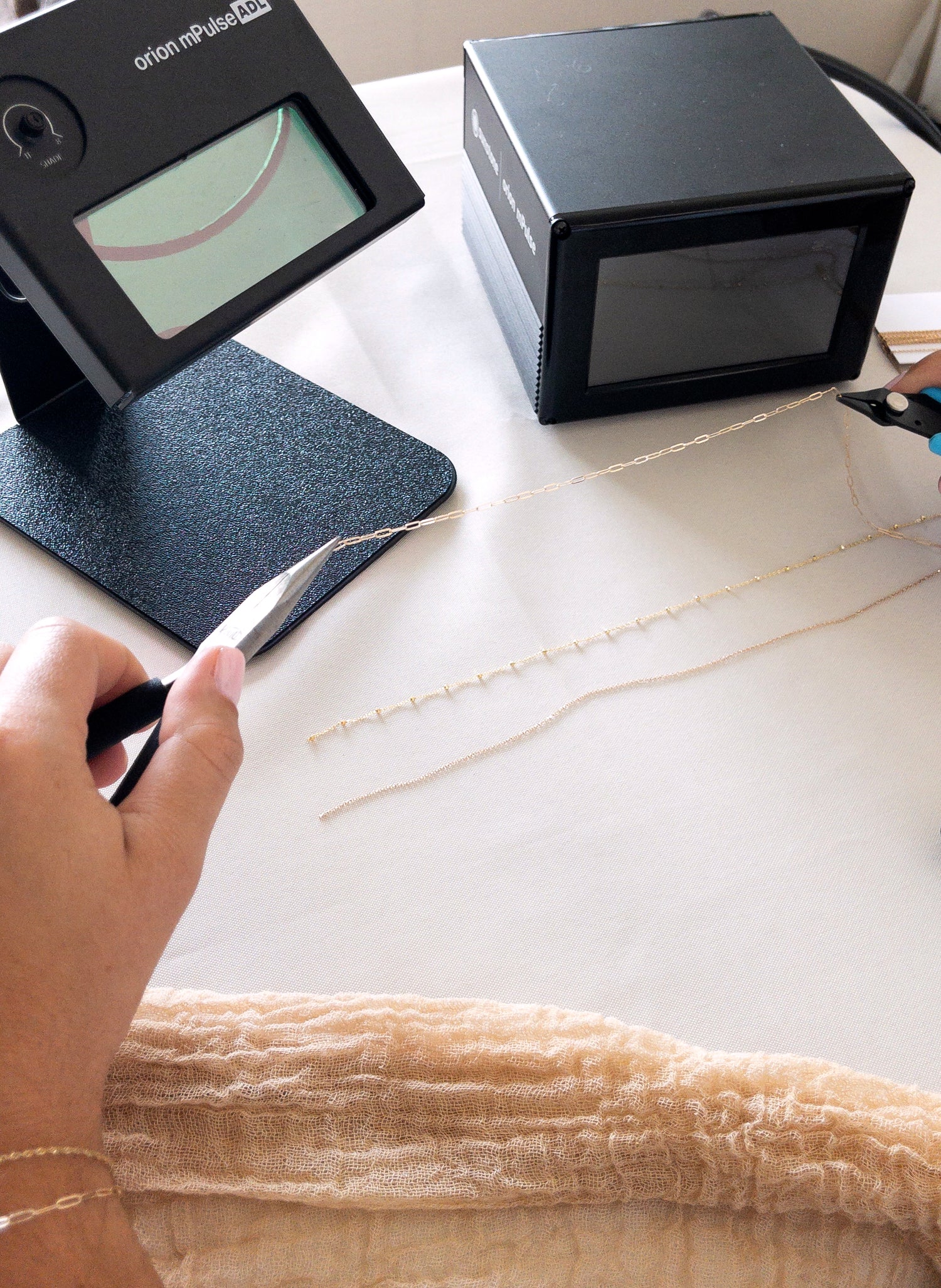 2. Mackenzie will size the chain to your suggested fit, apply a temporary clasp to test the sizing, adjust until it fits just right, then weld!