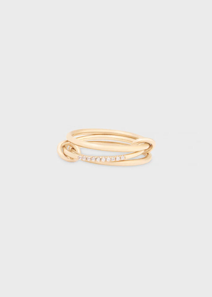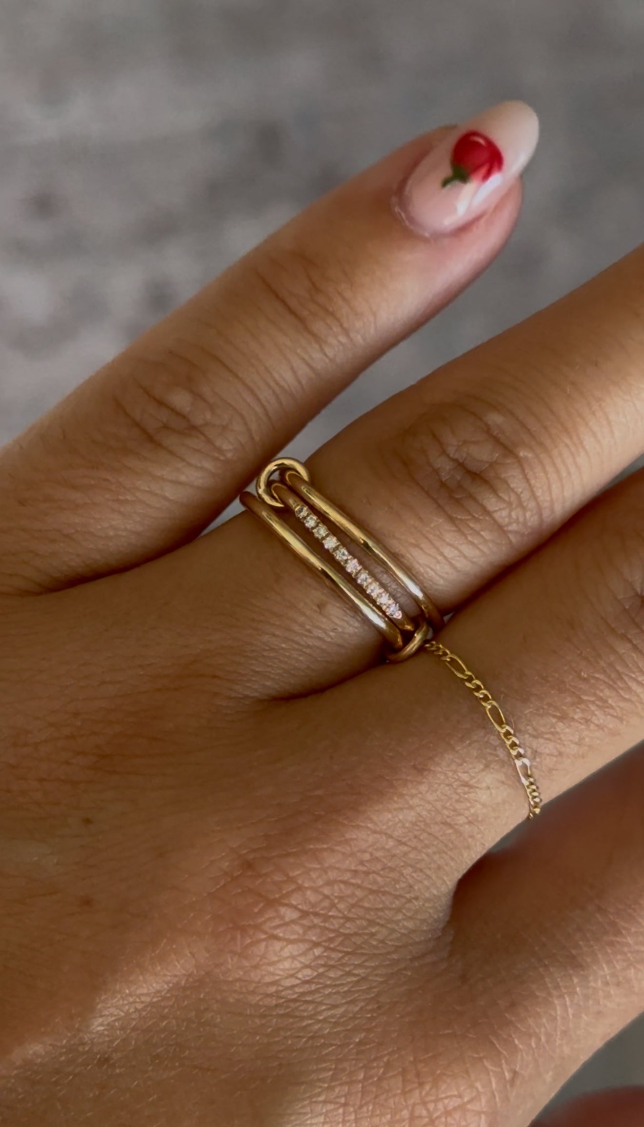 This set combines three 14k gold filled rings (2 plain, 1 cz stone ring) with two linking 14k gold filled rings.