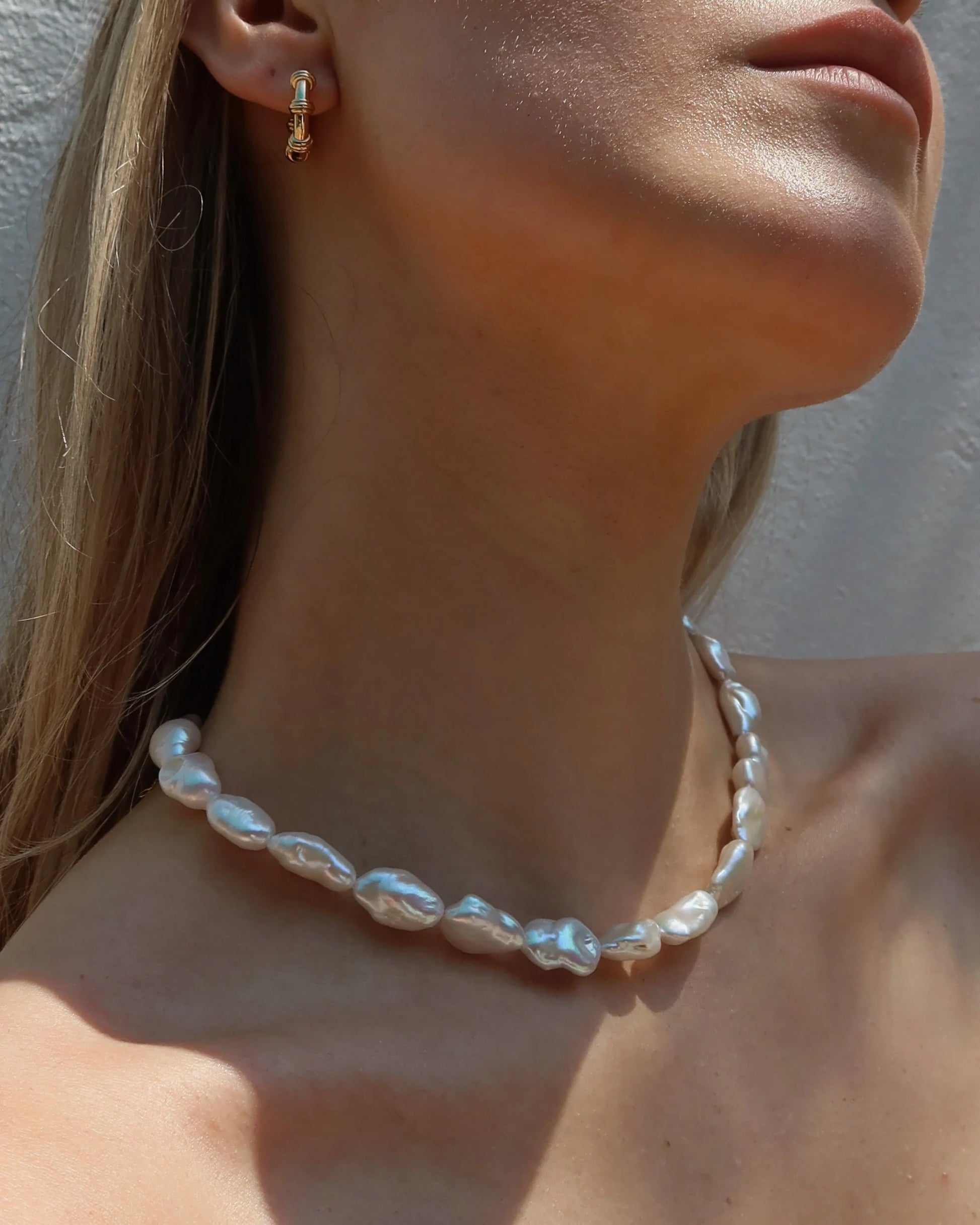 The Sable Notched Hoops reimagine the classic gold hoop with a distinctive, sculptural quality. Crafted from high-quality gold plating, their unique design features elegant, rope-inspired knots and continuous curve, punctuated by beautifully defined notches that catch the light with every turn. A modern take on timeless style, these hoops are designed to effortlessly elevate any look with their understated yet impactful presence.